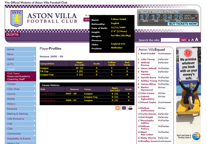 Some of you may not remember this and I'm not sure exactly when it happened, but I think it was around deadline day last summer, but Fabian Delph appeared on the club website with a player profile. I think this deal has been in the works for some time and if you wanted to put money on a player coming this summer, I reckon this one is a sure thing. Click the image to see how it looked.
