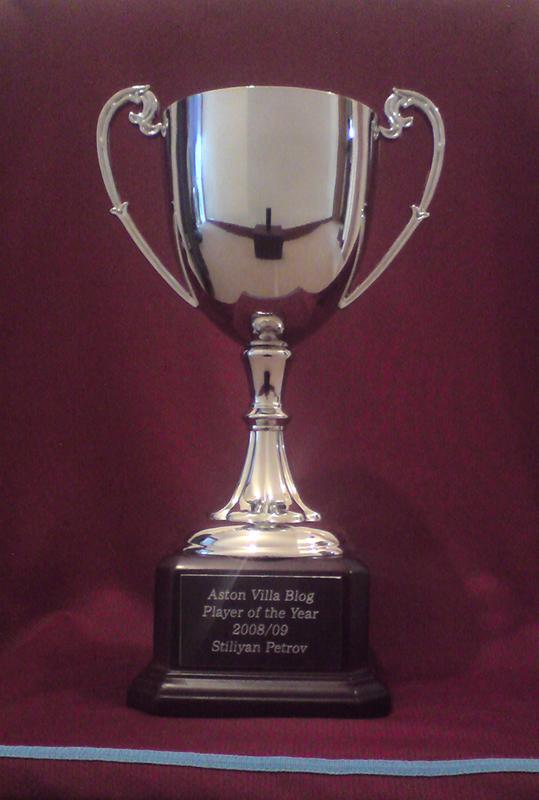 The award is for the Aston Villa Blog player of the season and its gone to Stiliyan Petrov. If you click the image, you'll see a bigger version, but basically it was dropped off at Bodymoor, as instructed and while we couldn't put it into the players hands directly, we sort of hope he has it, although I half suspect, based on what we've been told, that if he did actually get it, we'd have had a response by now and a photo. We haven't, so all we can do is show you what was sent.